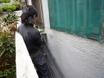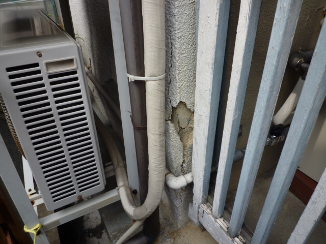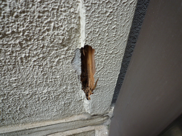 もともと柱が外部に表しになっていたのを、どうも改装のときにペンキで塗装をして、そのために「木にビニールをかぶせた状態」になって白アリにやられてしまったようです。